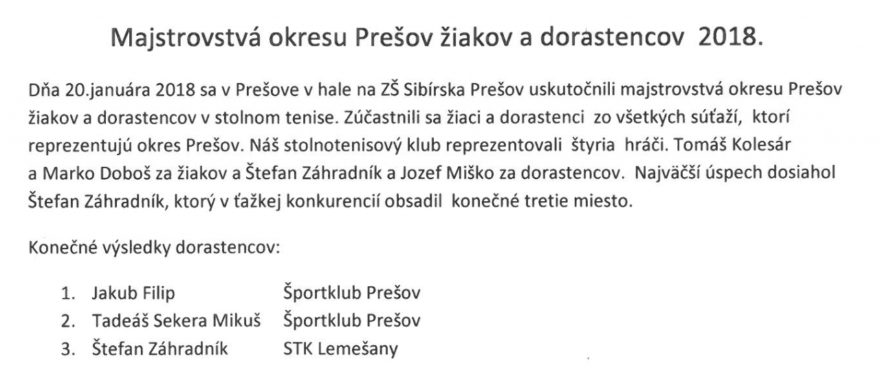Majstorvstvá okresu Prešov v stolnom tenise